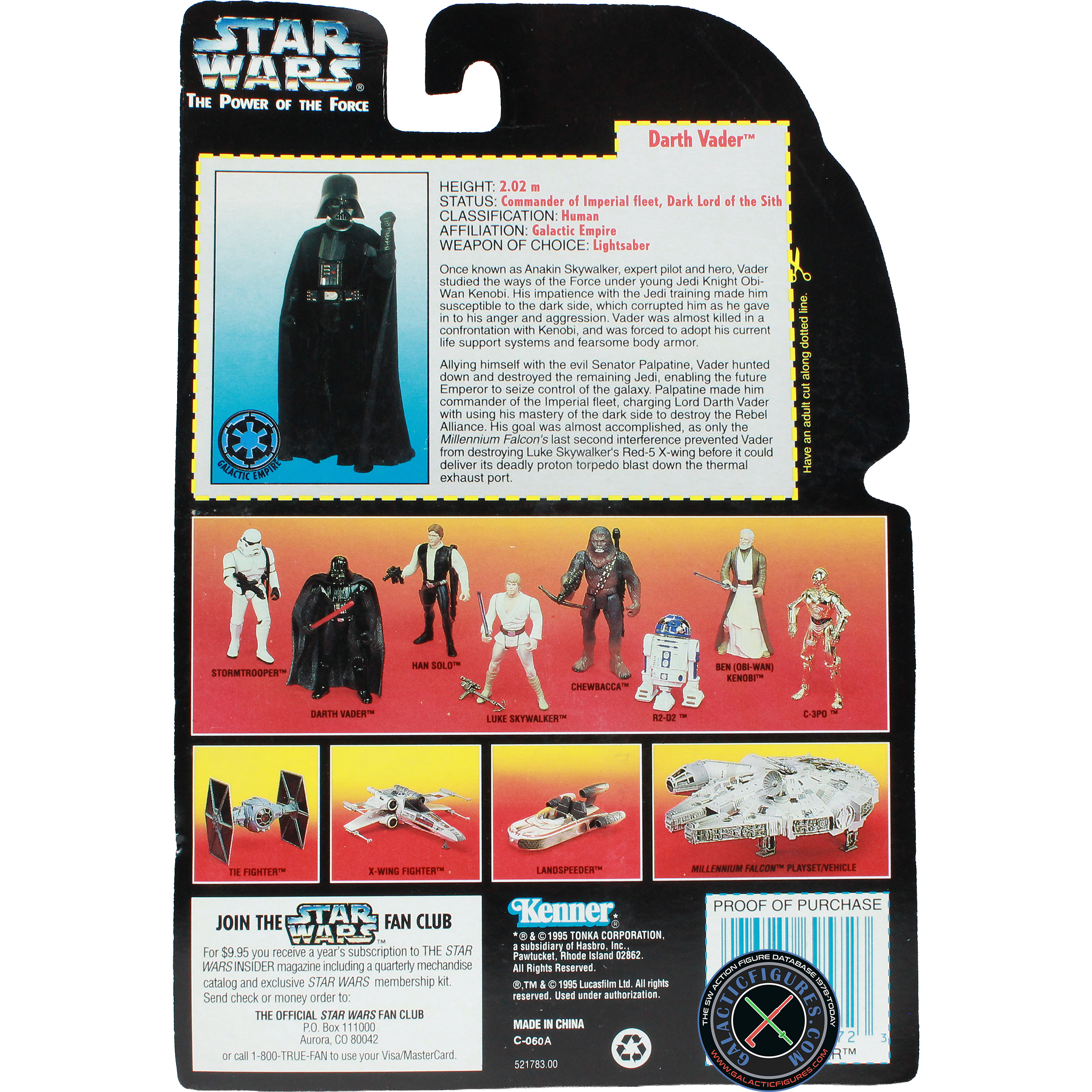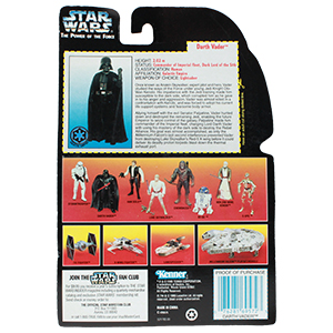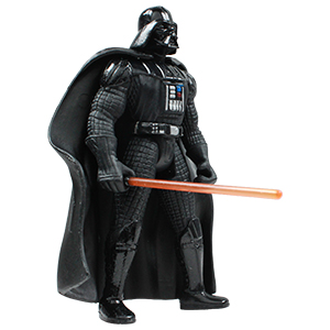 Once known as Anakin Skywalker, expert pilot and hero, Vader studied the ways of the Force under young Jedi Knight Obi-Wan Kenobi. His impatience with the Jedi training made him susceptible to the dark side, which corrupted him as he gave in to his anger and aggression. Vader was almost killed in a confrontation with Kenobi, and was forced to adopt his current life support systems and fearsome body armor.