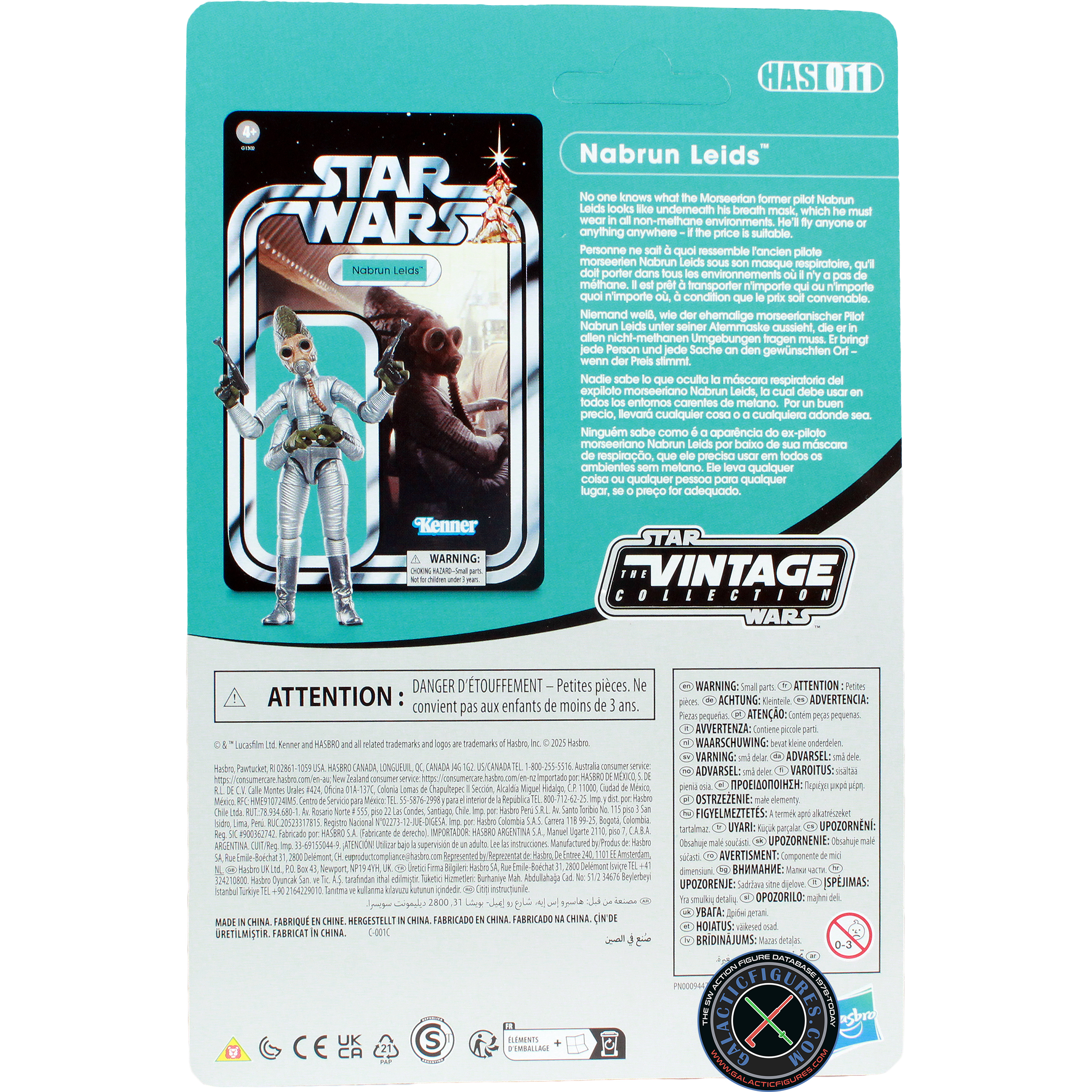 • This Nabrun Leids figure was released single carded as part of the Vintage Collection Mos Eisley Cantina HasLab project in September 2025