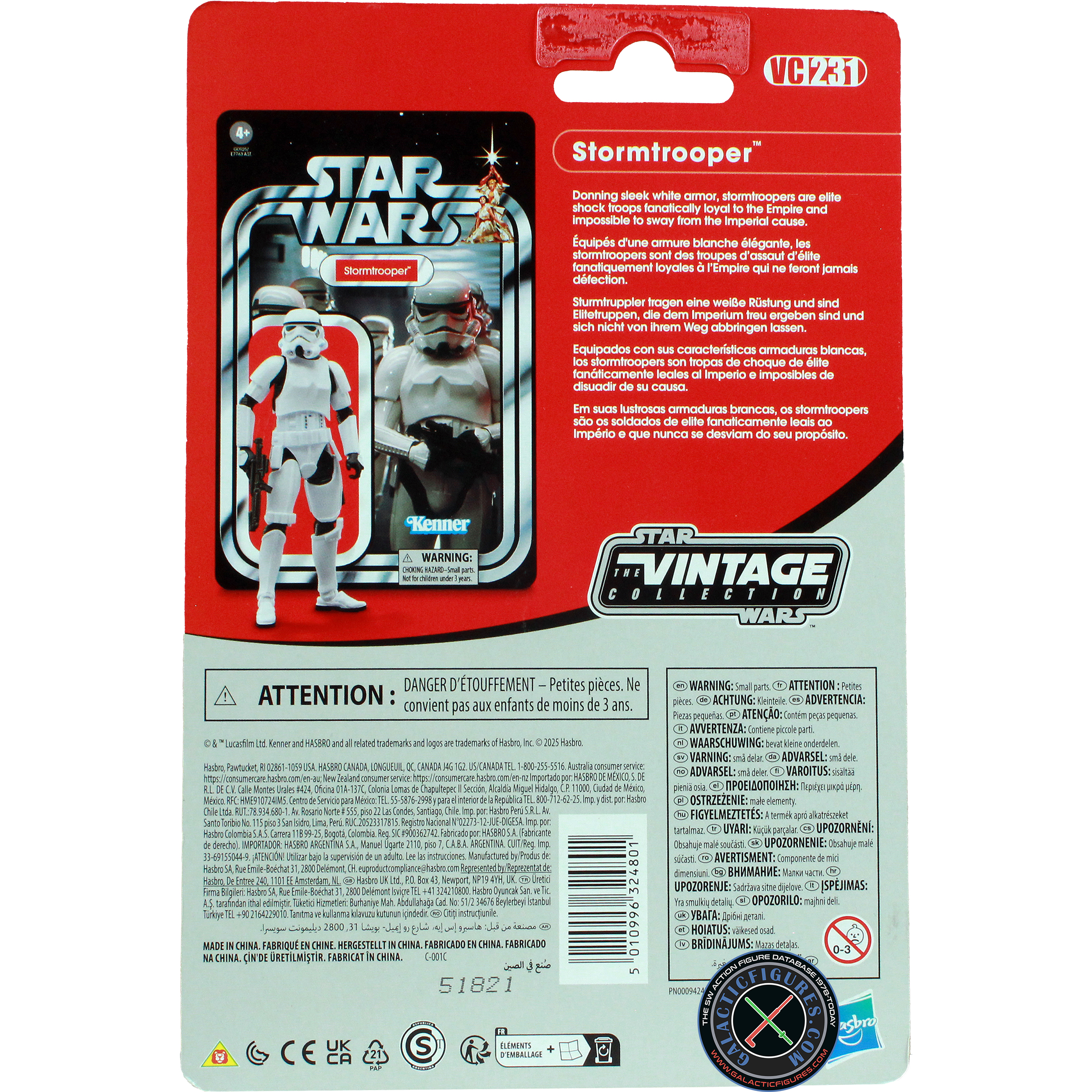 • The figure is a straight re-pack but on an alternate cardback of the VC231 Stormtrooper from 2024