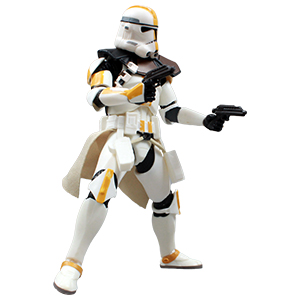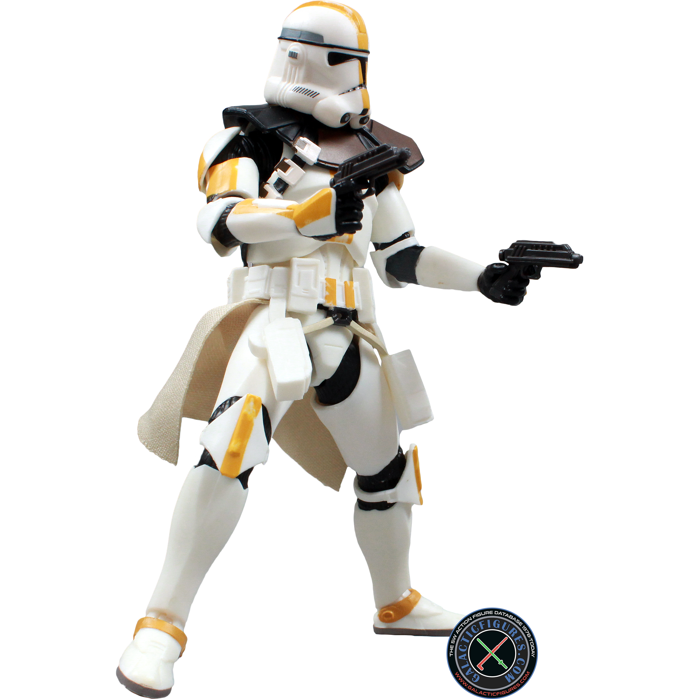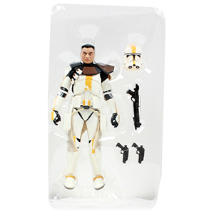 Clone Lieutenant Galle came with two standard blasters, a blaster rifle and a removable helmet