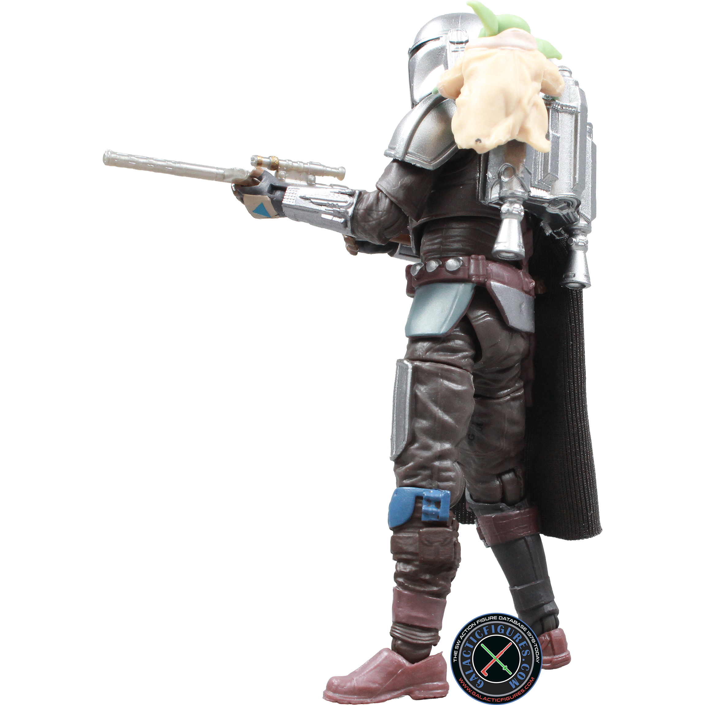 The removable jetpack plugs into a port on the figure's back and features a large peg on the left side where Grogu can be attached, creating the look of Grogu riding on Din Djarin's shoulder