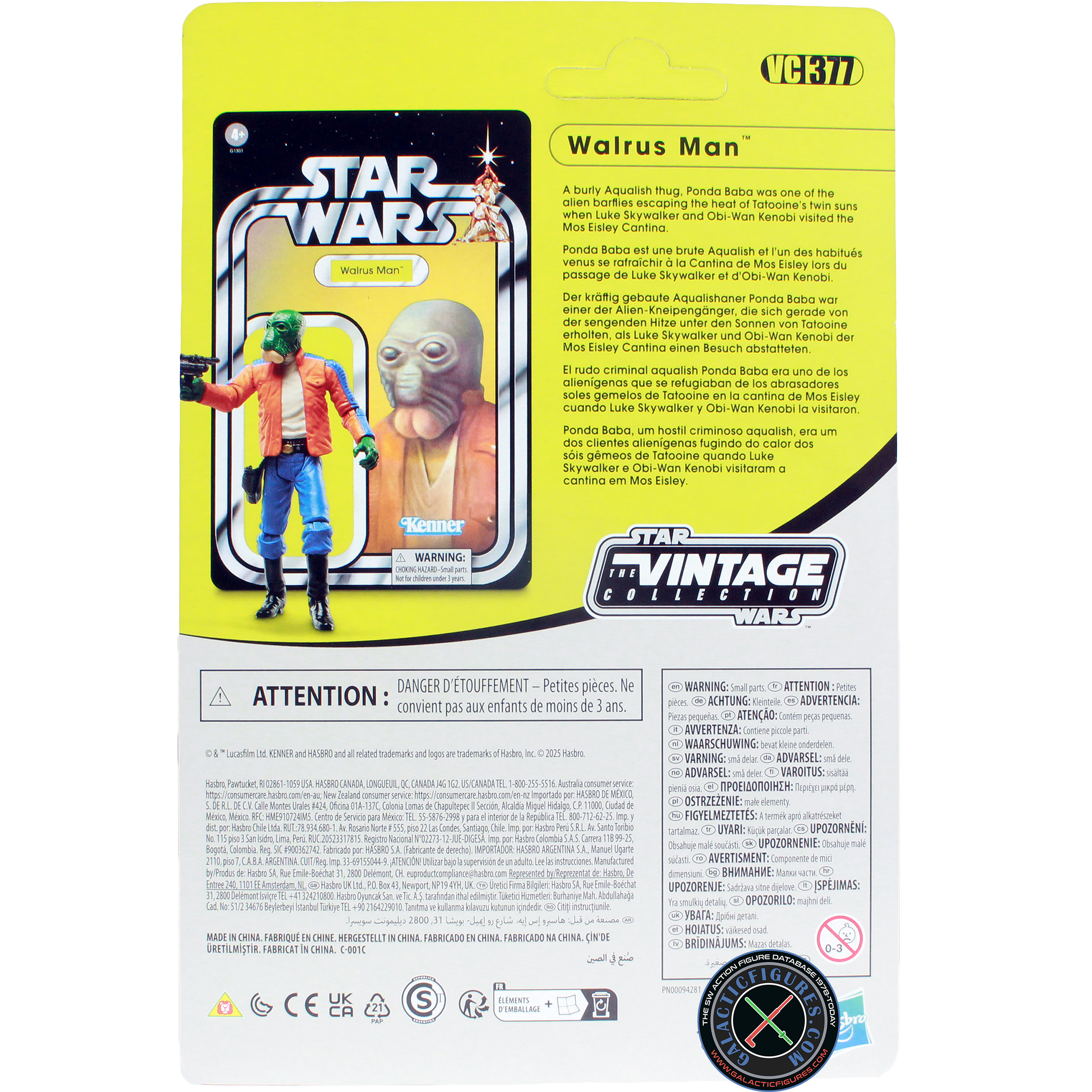 This Ponda Baba (Walrusman) figure was released single carded as part of a Creature Cantina Adventure Set 4-pack in September 2025 exclusively through HasbroPulse.com