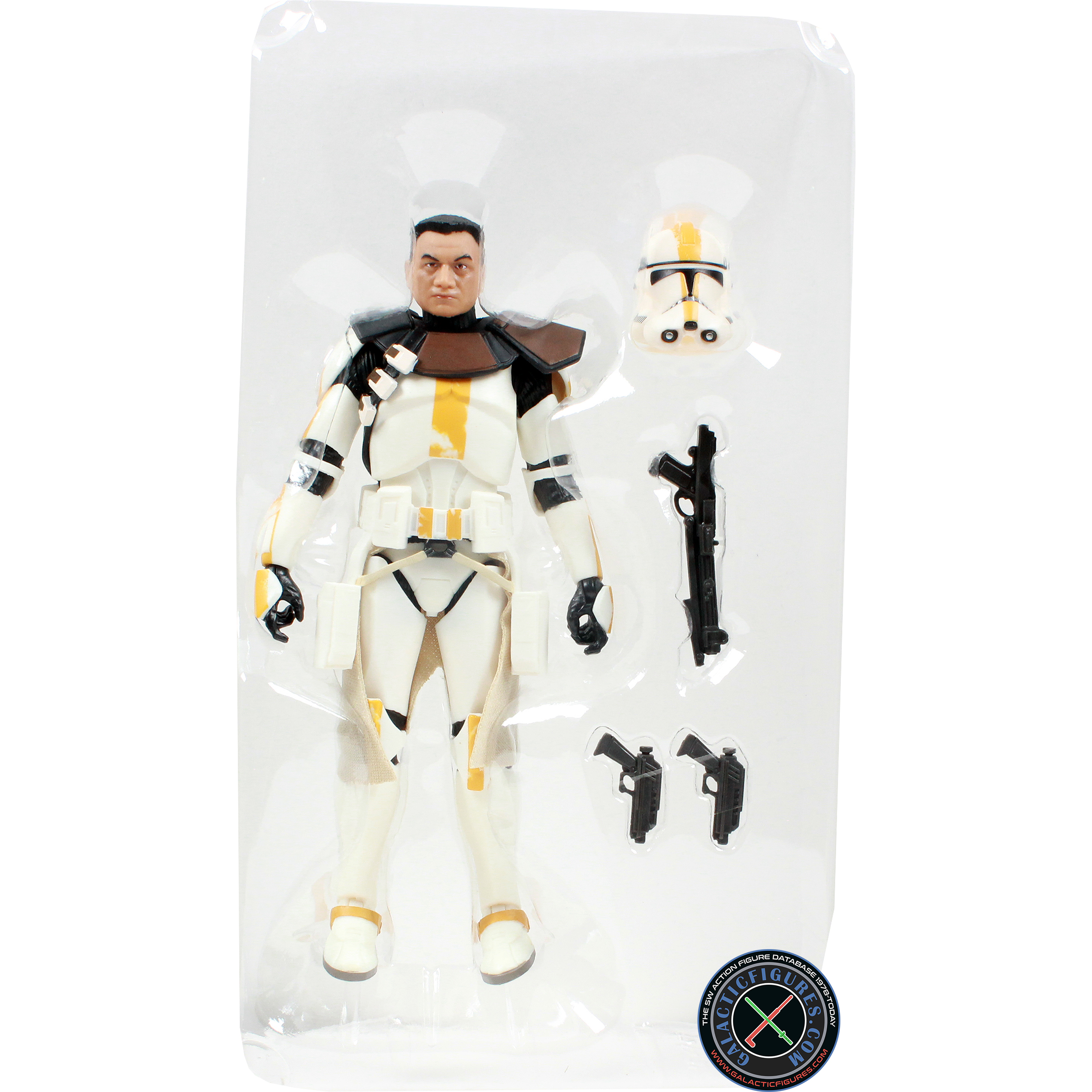 Clone Lieutenant Galle came with two standard blasters, a blaster rifle and a removable helmet
