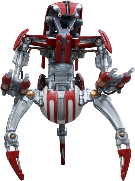 Baton-wielding Security Droid Enforcers were designed primarily to train Imperial stormtroopers in the use of the electroshock baton. Clad in bronzium armor and protected by a powerful shield, the Colicoid-made droideka are a terror on the battlefield.