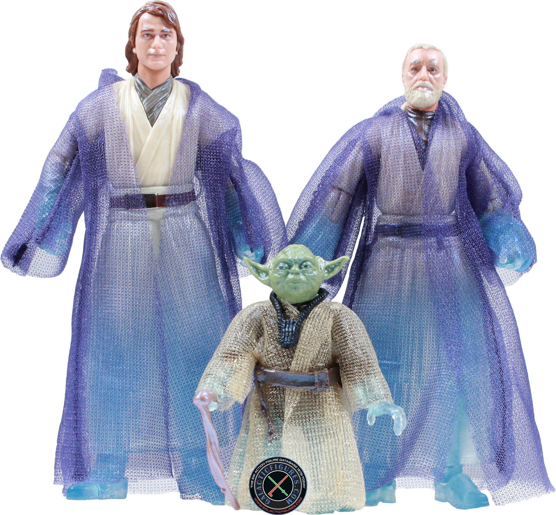 • You can find the other figures from this set here on GalacticFigures.com: Yoda Force Ghost - Anakin Skywalker Force Ghost For this Obi-Wan Kenobi Force Ghost figure Hasbro reused this Obi-Wan Kenobi figure from earlier this year in 2025 and repainted it
