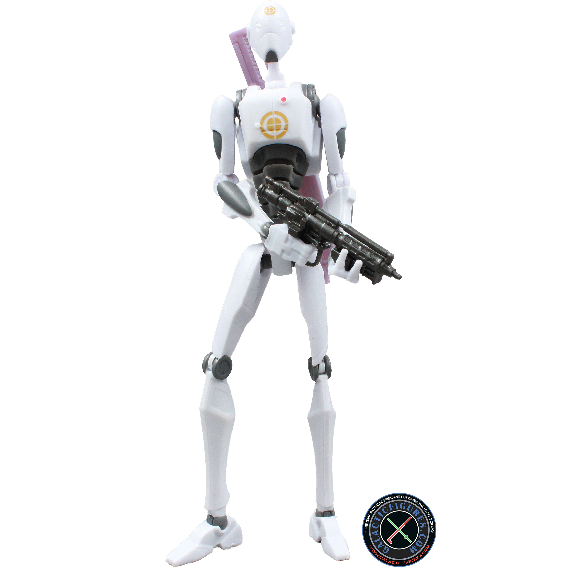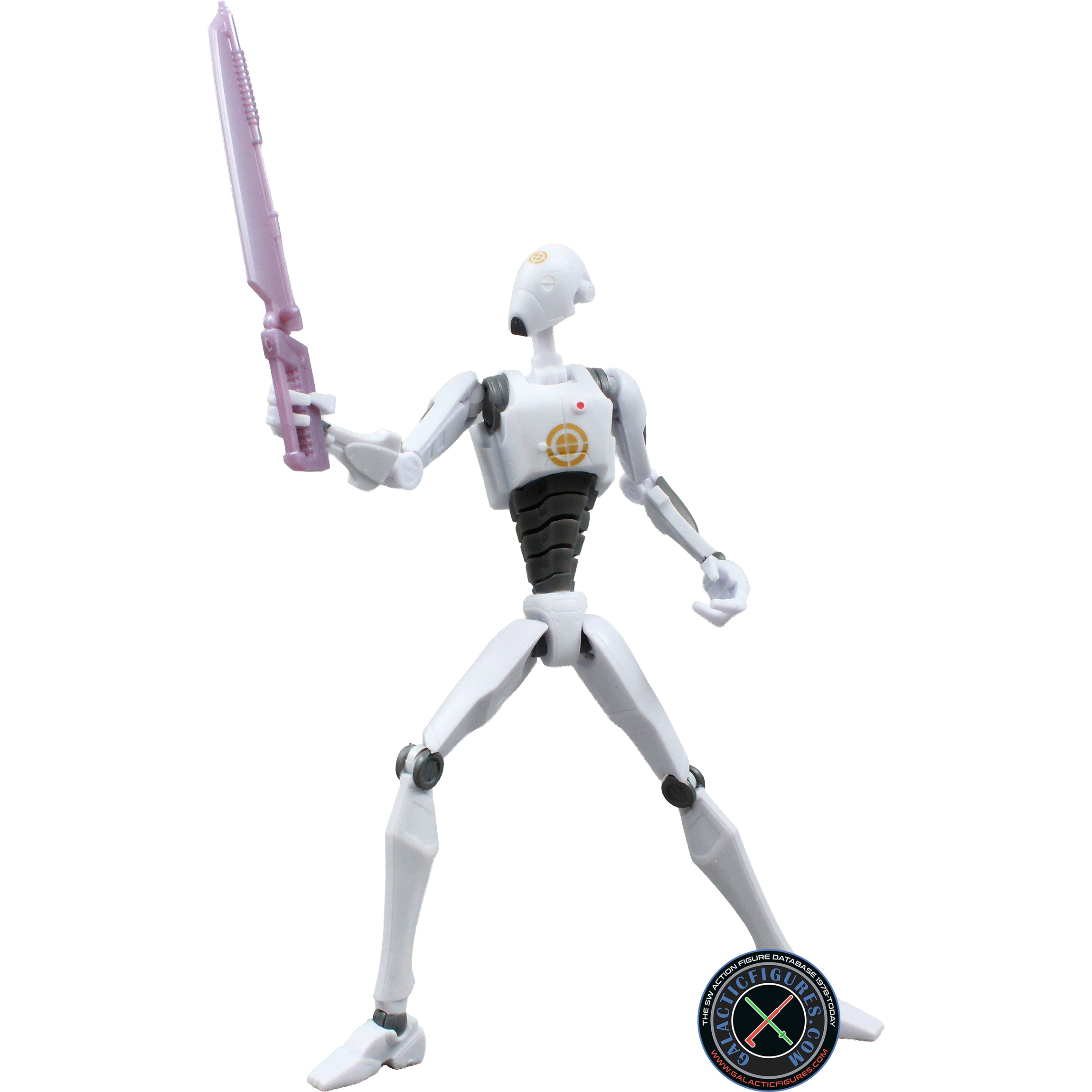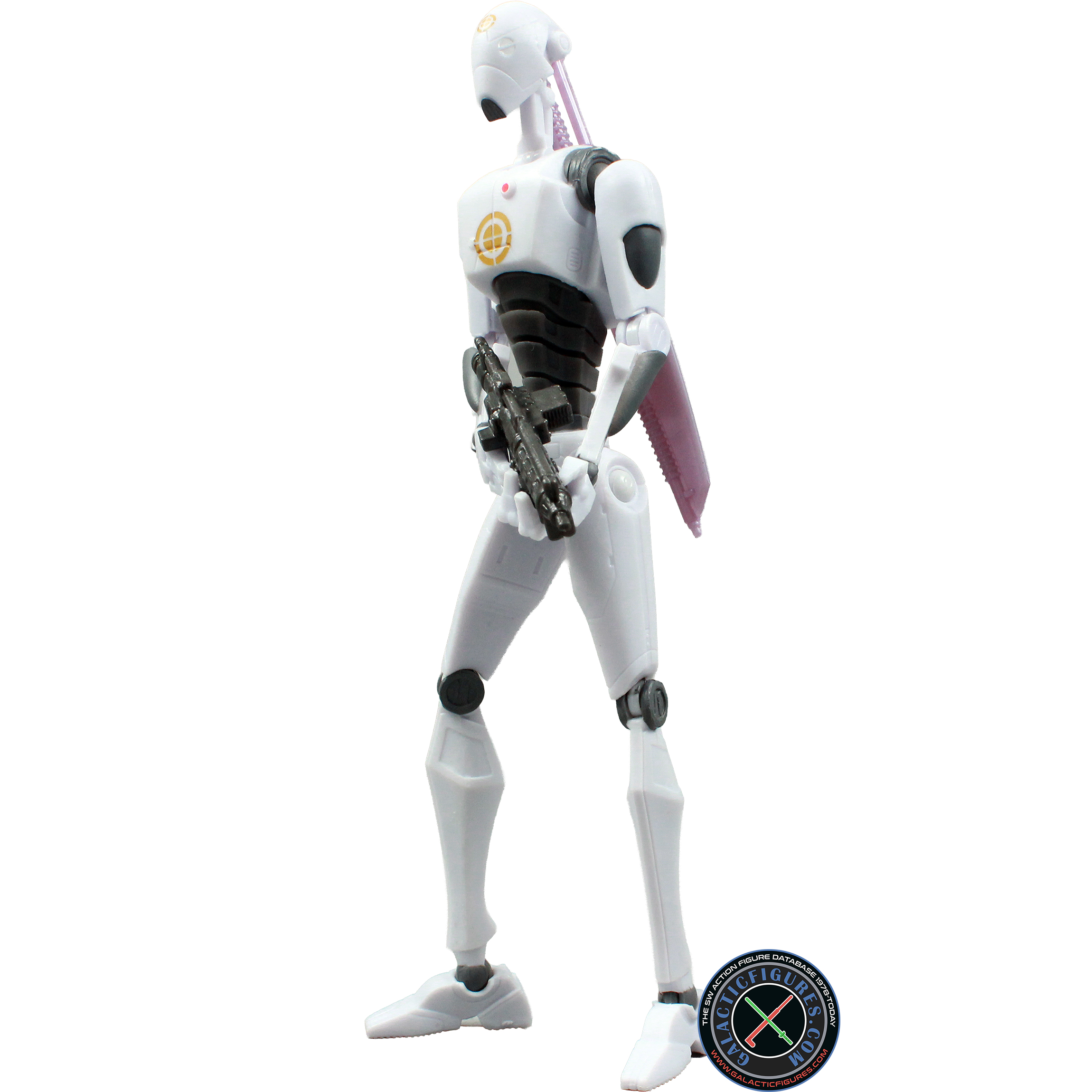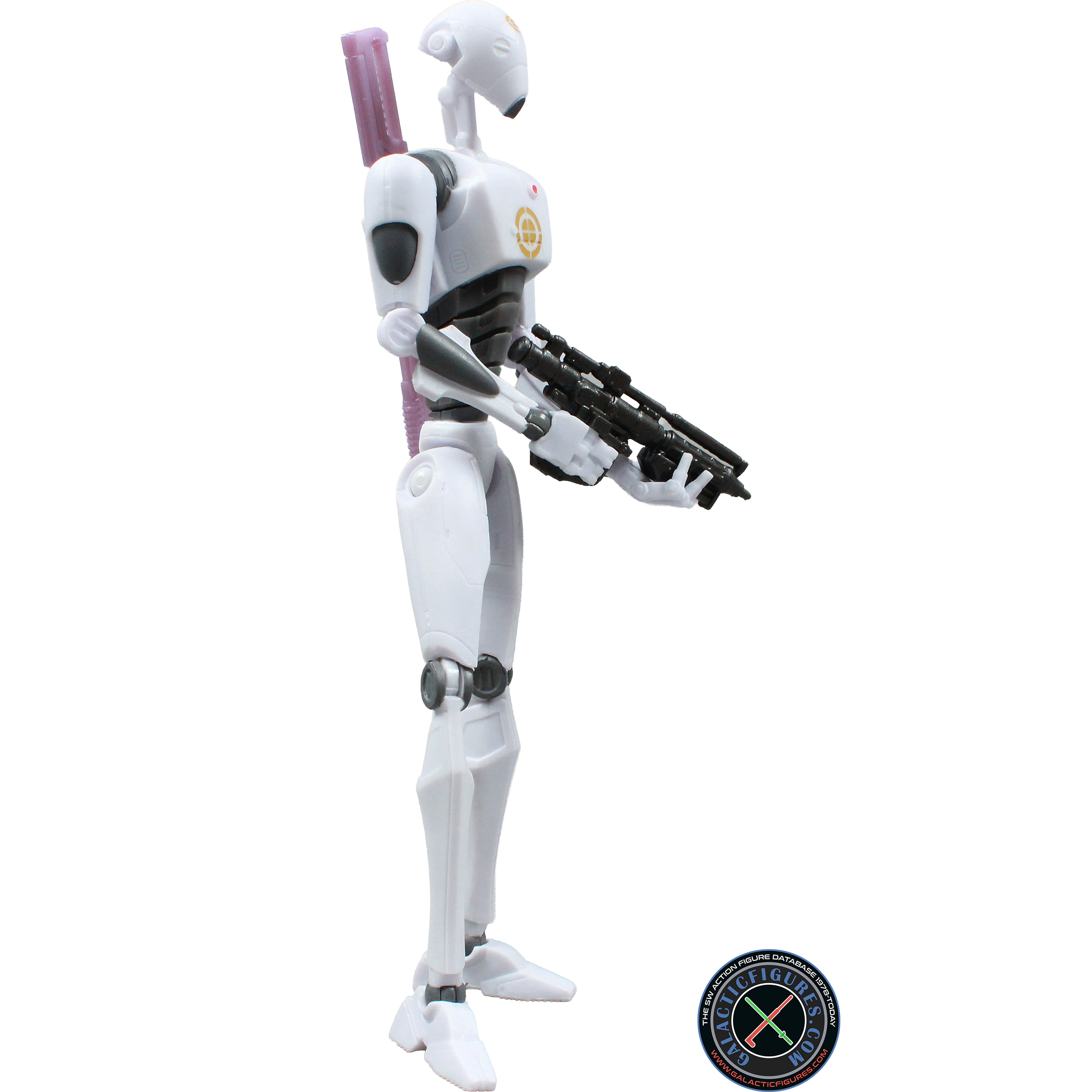 • Hasbro included two weapons with this Commando Droid, a regular Droid blaster and an energy sword