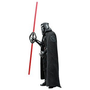Hasbro packed the figure with a removable soft goods cape and two different lightsaber options
